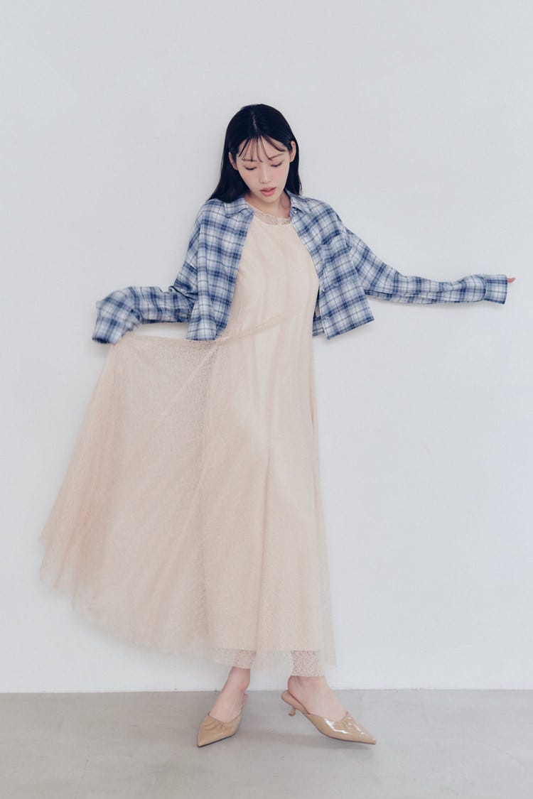 軽やかなワンピにミュールあわせが、絵に描いたようないいオンナ♡ メンズっぽ〜なチェックシャツはクロップド丈で女性らしさを。