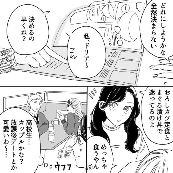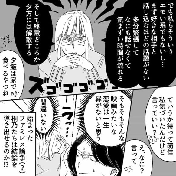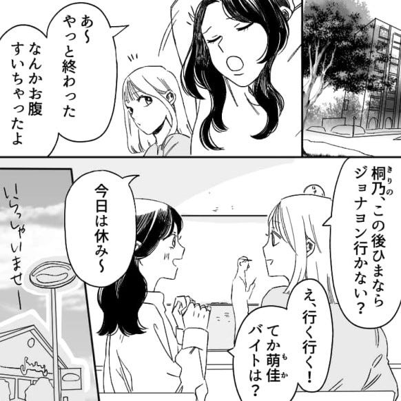 主人公とその友だち・萌佳は授業終わりにファミレスへ行くことになります。