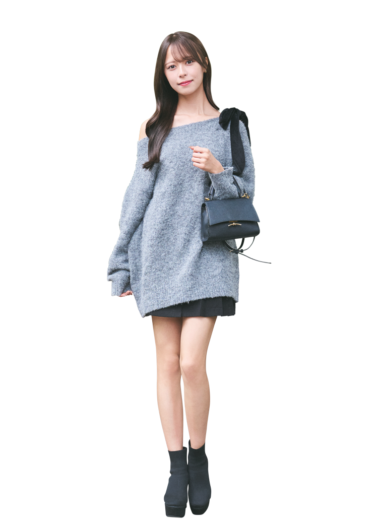 。韓国で約2,000円で買ったプリーツスカートとあわせてガーリー要素をプラス。肩と脚をW見せする本気コーデ♡