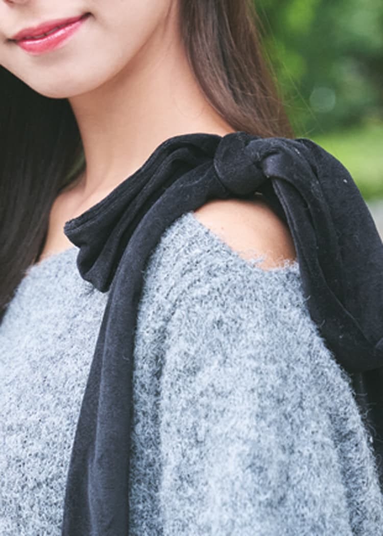 「リボンのワンショルダーがついたニットワンピはGRLで約4,000円。