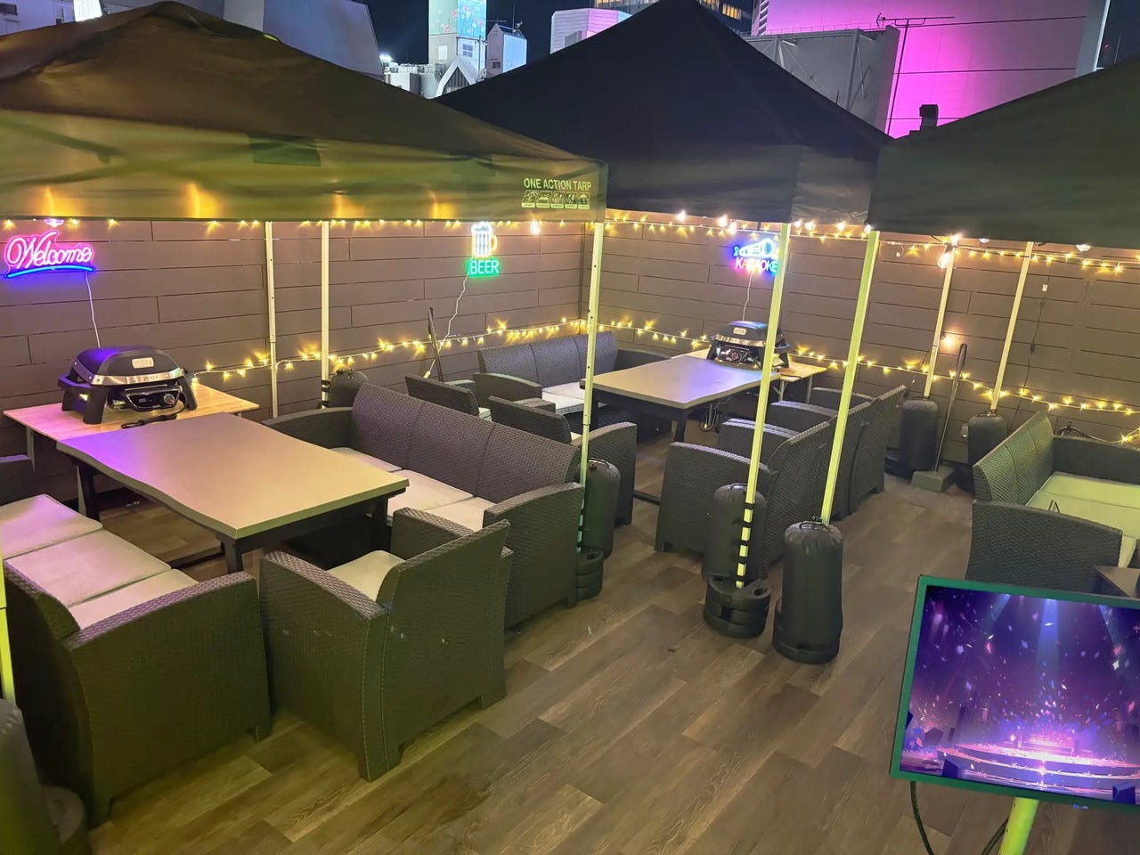ジャンカラ店舗の屋上スペースを活用し、夏はBBQ、冬は鍋、そしてカラオケを組み合わせた新しいエンターテインメント体験が楽しめるアミューズメント施設「ジャンオク心斎橋店」が誕生。全国5店舗目となる話題のスポットで、本格グルメとカラオケステージで盛り上がりましょう!