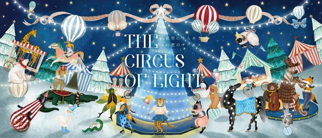 ツリーの周囲では、クリスマスマーケット「Wonder Christmas Marche」がスタート。会場には“サーカス”の世界観を感じられる装飾やヒュッテが登場し、サーカスの動物にちなんだフォトスポットもスタンバイします。