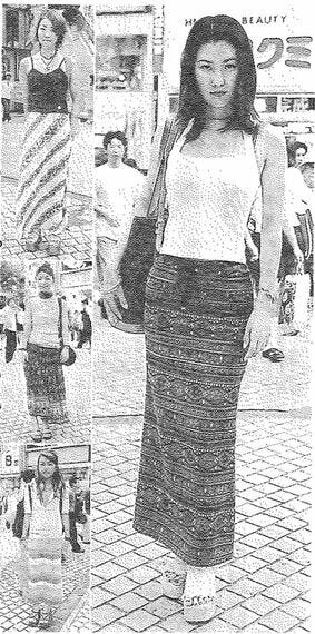 原宿では、グランジファッションがブームだったころを思い出すようなずるずるのデニムスカートやサイドにラインが入ったジャージーものが目に付く。自分のタンス在庫から引っ張り出してはいているようだ。昨年はやったようなエスニック調のギャザースカートもある。