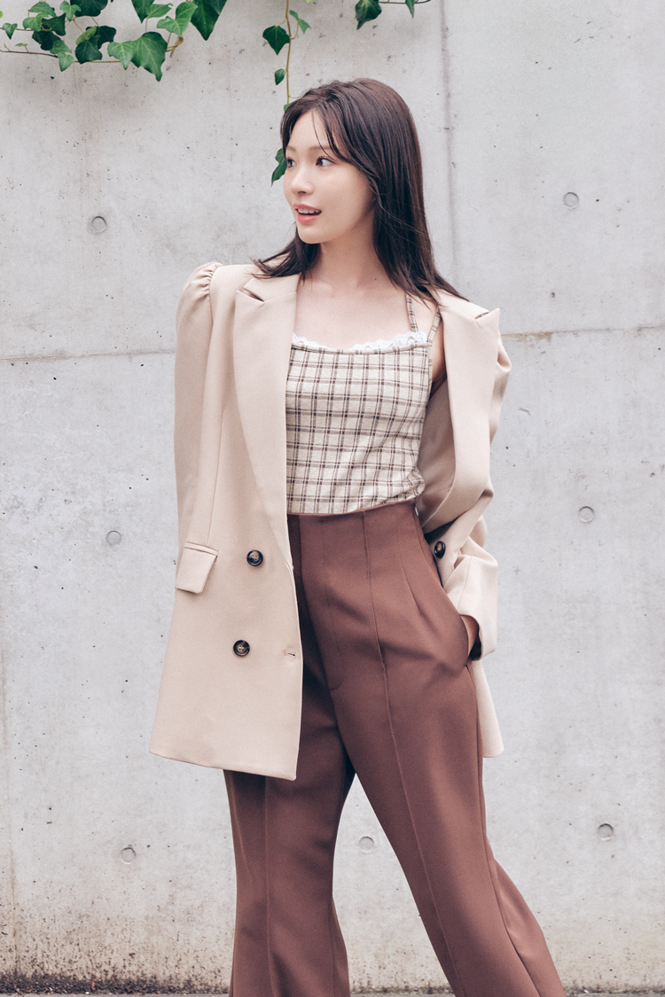 キレイめなジャケットにキャミを仕込んで女みアップ