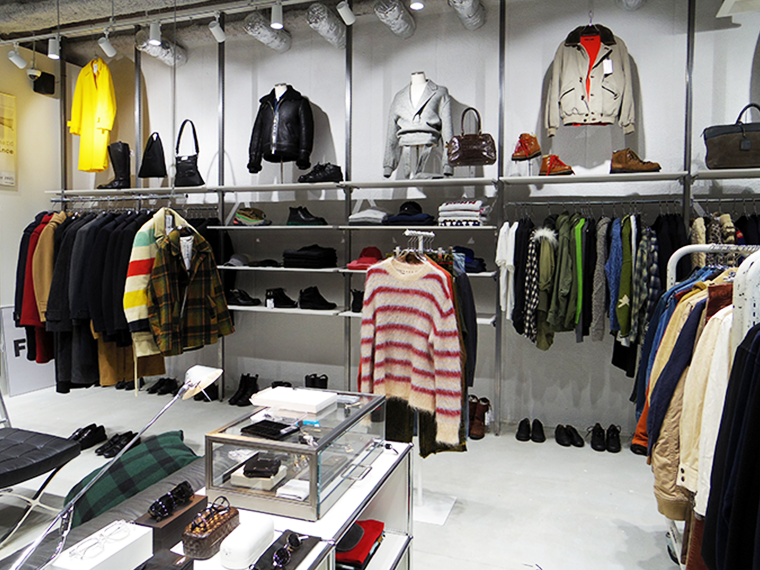 新築ビルの2階部分で300平方メートル。従来からの古着屋JAMが約半分、残りの半分をデザイナーブランド古着のファイとJAMクラシックスが占める。原宿店に続き2店目となったファイは、照明をはじめとした空間の雰囲気を変えたインショップにした。一方、JAMクラシックスは、通常よりも単価の高いビンテージを多彩に用意。初心者だけでなく、マニアも楽しめるゾーンを実現した。