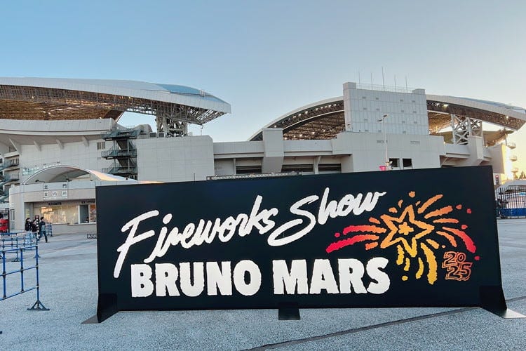 ブルーノ・マーズの音楽と日本の花火がコラボした世界初の音楽花火ショー『Bruno Mars Fireworks Show 2025』が、11月1日(土)に埼玉スタジアム2○○2にて開催されました。埼玉の夜空を鮮やかに彩った約12,000発の花火をはじめとして、各所に設置されたフォトブース、“ブルーノ花火”特製のビッグガチャなどーーメインイベント以外の模様もたっぷりとお届けします!