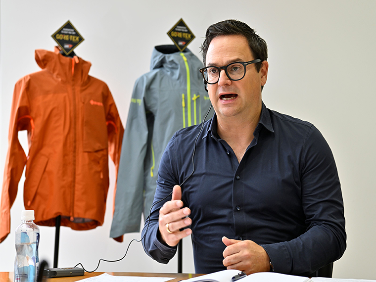 ファブリクス事業のグローバル戦略を統括するアキム・レフラー氏は、「ゴアは、製品パフォーマンスと高いレベルでの環境配慮を両立する責任あるパフォーマンスを追求し、アパレルとシューズ産業の未来に貢献する」と語る。今秋冬は頂点素材の次世代ゴアテックスプロを30以上のアウトドアブランドが採用した。