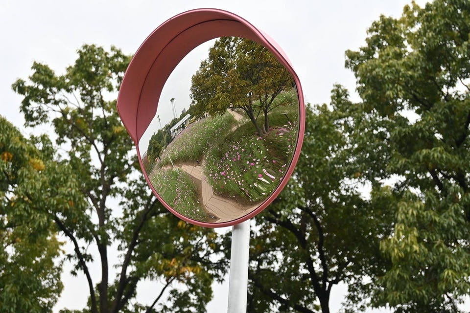 20,000株が植わるコスモス畑には、来園者が楽しめる仕掛けも。ピンク色のドアがあったり、カーブミラーがあったり。ぬいぐるみとの撮影を楽しめる「ぬい撮りフォトスポット」もありました。