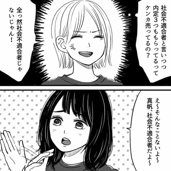 残念な結果に落ち込む主人公は同じバイトの真帆に「私、社会不適合者だから大丈夫だよ!」との旨を言われ、励まされます。