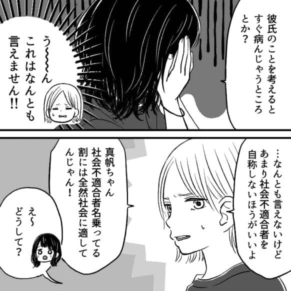 友だちや彼氏、バイト先の上司や先輩など、身のまわりで起こったことに悩んだことはありませんか? 今回、Ray WEB編集部は自称社会不適合者の友だちについて読者に話を聞いて漫画にしてみました。