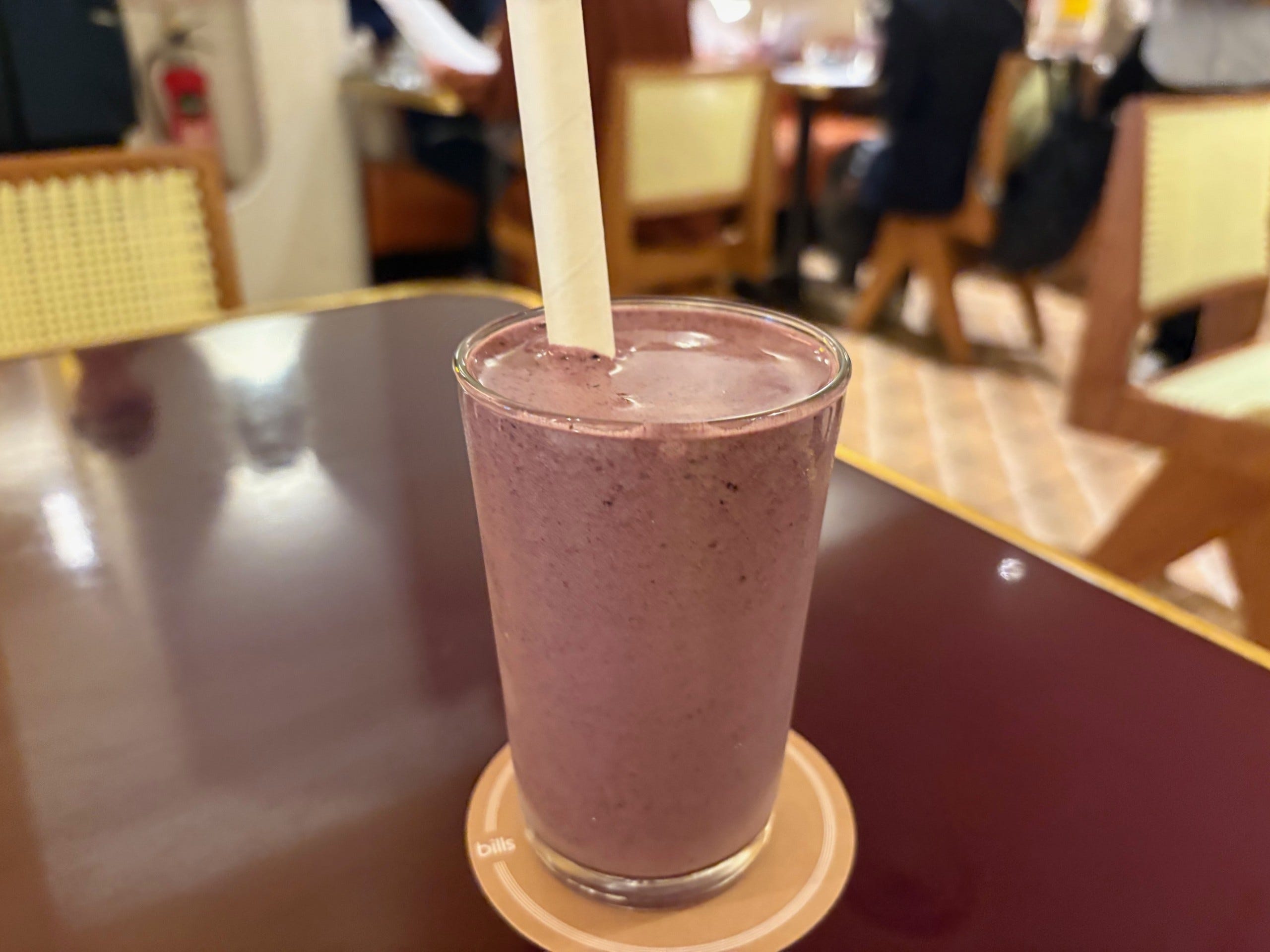 ドリンクの注目は、「ブルーベリープロテイン-ブルーベリー、アーモンドミルク、はちみつ、グラスフェド ホエイプロテイン」。