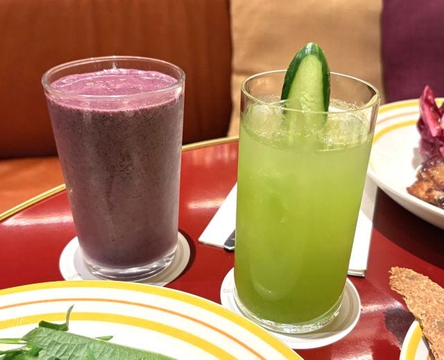 「マンダリン&タラゴンソーダ」 アルコールは、澄川酒造場の「bills house 日本酒」をベースにした「bills サケ&キューカンバー - bills日本酒、ジン、きゅうり、バイマックルー、レモングラス」が爽やかで飲みやすい一杯。