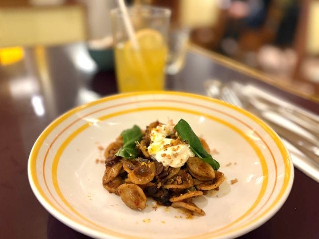 「オレキエッテ - 自家製XO醤、リコッタ、ケッパー、カラマタオリーブ」は、日本と韓国限定のパスタプレート。自家製XO醤がショートパスタに絡み、イタリア×アジアの融合を感じられます。冷えたスパークリングワインと相性抜群で、シェアにもおすすめです。