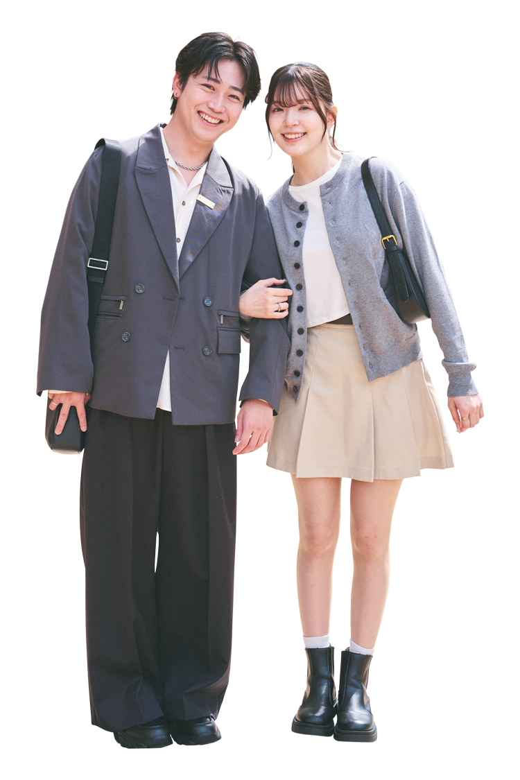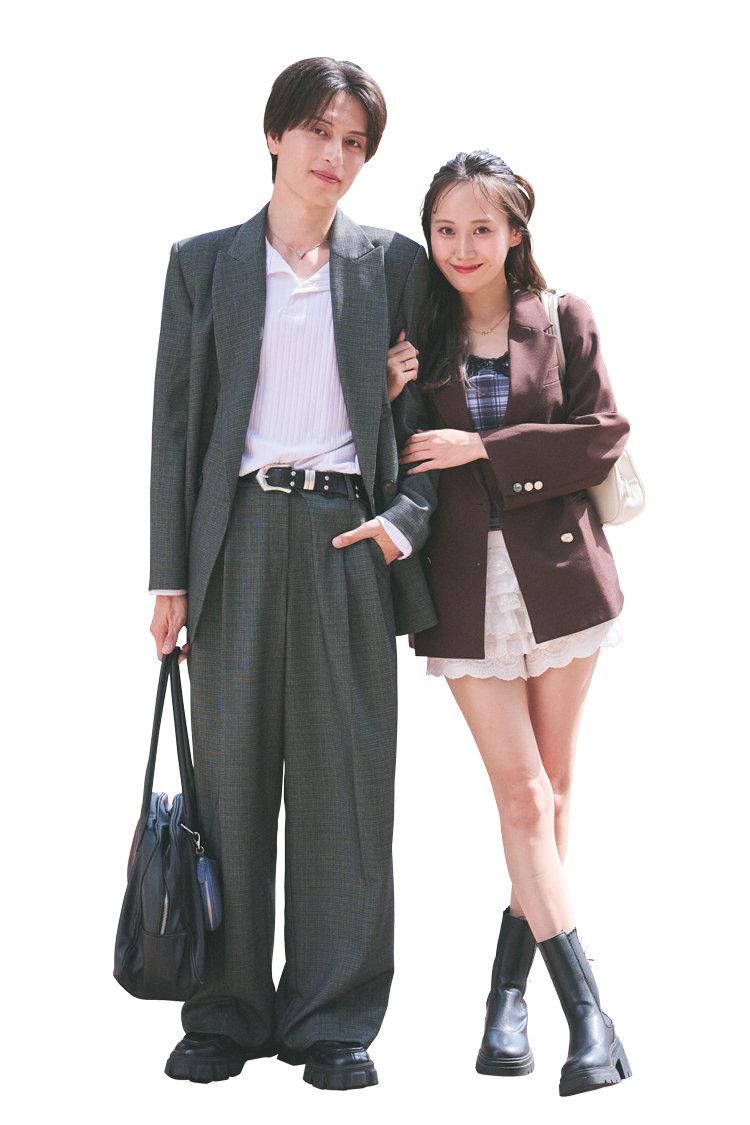 Instagram:@knt_m325 交際期間:6年5ヵ月 PROFILE:YouTubeチャンネル登録者32万人、TikTokフォロワー 77万人とたくさんのファンを魅了するカップル系インフルエンサー。「真似したい」をぎゅっと詰め込んだ、理想の2人。