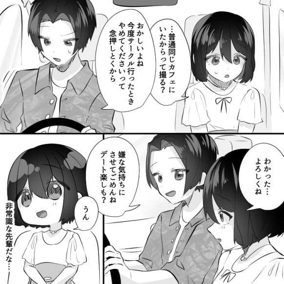 ありえない...サークルの先輩が主人公たちのデート中に【衝撃行動】をしてきて...!?