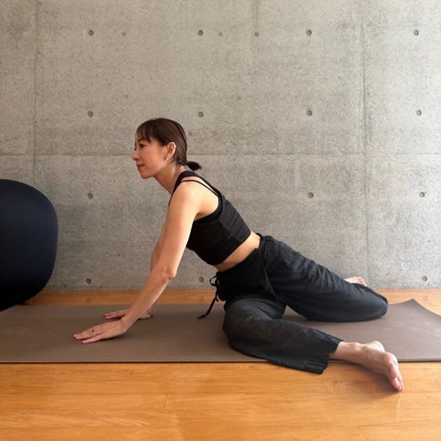 意外と凝っているヒップは、体を安定させたり、走るときにも使ったりする重要なパーツ。このストレッチはぜひ普段から取り入れていただきたいです!
