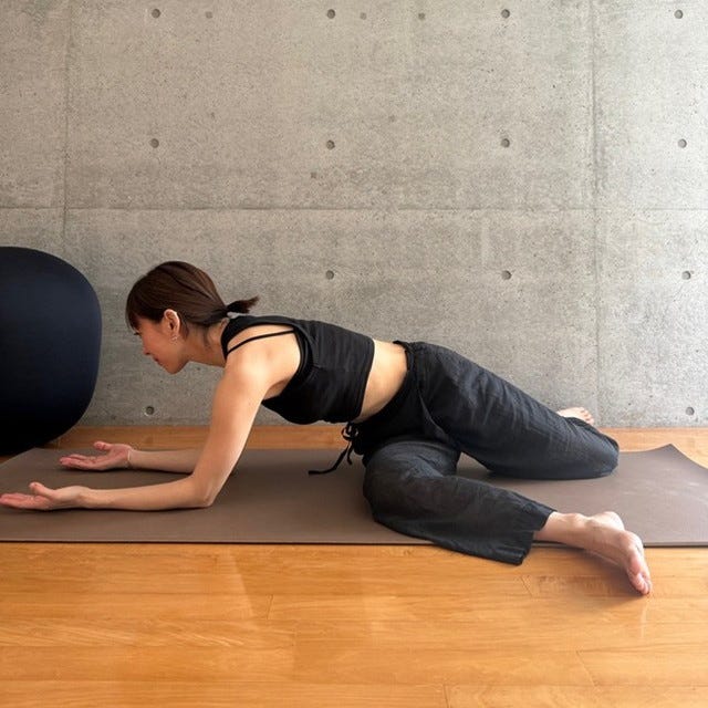 体の軸となる“背骨+肩甲骨+股関節”をセットで動かせるストレッチです。背骨や胸を緩めてしっかり呼吸を深め、普段使わないところを意識しながら体を動かすのがおすすめです。
