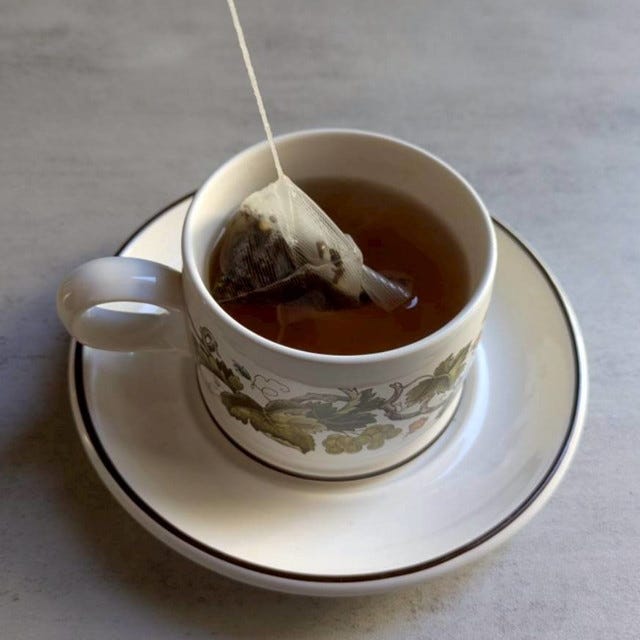【01】小鍋でお湯を沸かし、火を止めてティーバッグを浸す。2分ほど蒸らしてから引き上げる。