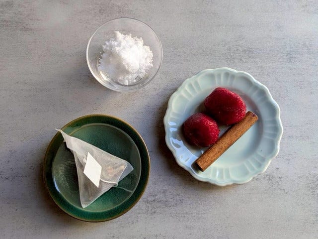 シナモンには体を温める作用があるとされ、薬膳でも多用される食材のひとつ。ビタミンCが豊富なローズヒップやいちごをプラスすれば、きれいにもうれしい華やかな一品の出来上がりです!