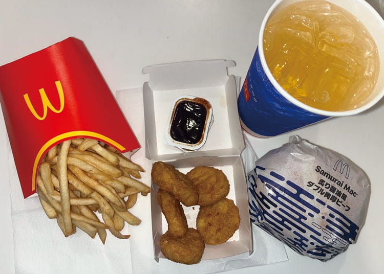 炙り醤油風ダブル肉厚ビーフ マックフライポテトLサイズ チキンマックナゲット5ピース ジンジャーエール「本当にいつもこればかり頼んでしまう、大好きなメニュー!食べ方にルールがあって、ハンバーガーは絶対、最後に食べる。ごほうびはとっておきたいタイプです」