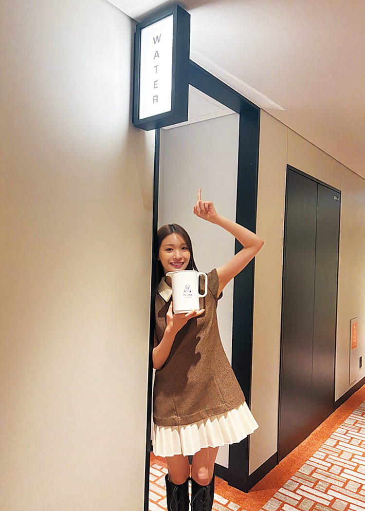 「お部屋にペットボトルの水はなくて、備えつけのポットに水を汲んで過ごすシステム。アメニティ類もプラスチックを使ってない、環境にやさしいところもすごく魅力的♡」