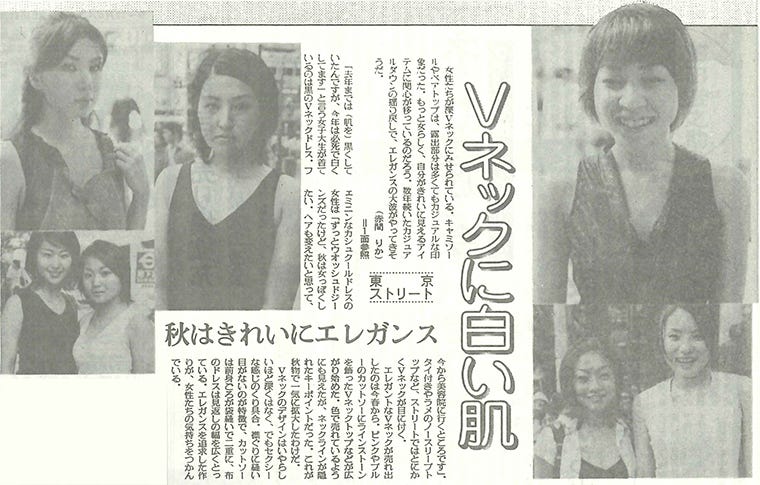 《平成ストリートスナップ》秋はエレガントな深Vネック 「肌は必死で白くしてます」(2000年8月26日付)
