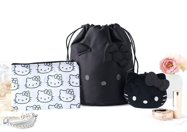 増刊号は、光沢のある真っ黒なサテン調素材が大人っぽい巾着ポーチ。キティちゃんのフェイスの可愛らしさに加え、立体的な耳やリボンのデザインで高見え抜群です。
