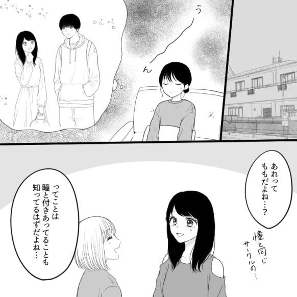 ある日の下校時、志帆は瞳の彼氏・直樹が女性と一緒にいるところを目撃してしまいます。