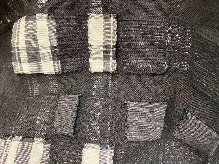 1位はクロスジャパンの「Wフェイスキューブチェックパネル」。ウール地にスクエア型のポリエステルを合わせ、収縮差でポリエステルの部分が浮かび上がり、チェックのような見た目のユニークな生地が注目された。