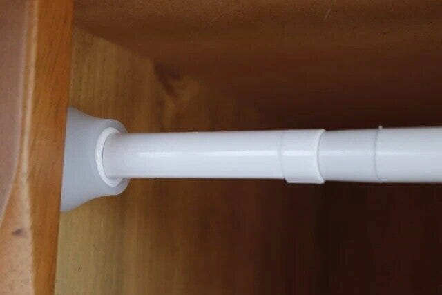 いつの間にか緩んでしまうつっぱり棒をロックしてくれる『つっぱり棒ロック』。伸縮側のポールの太さが約1cmのものに使用できます。