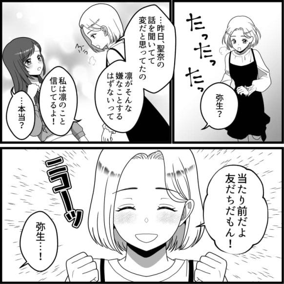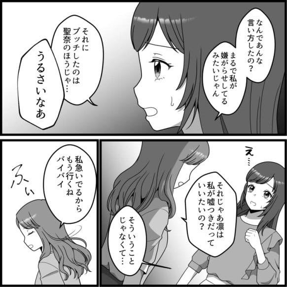 最近グループのなかの1人・聖奈が冷たい対応をしてくるため、凛は不安を感じています。