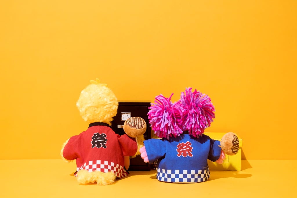 注目は、関西エリア初出店を記念して登場する「阪神梅田本店」限定アイテム! トラ柄、法被、たこ焼きなど大阪ならではのモチーフが散りばめられ、大阪らしいユーモアと「セサミストリート」の親しみやすさが調和したここでしか手に入らないアイテムです。