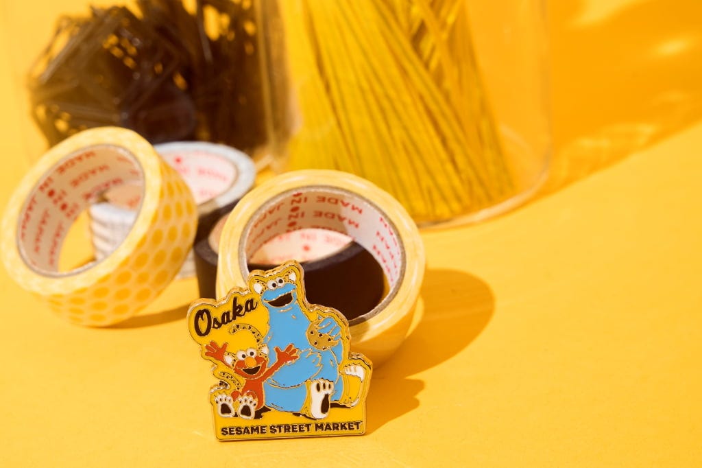 「ピンズ」(990円) また、トラのコスチューム姿になったエルモとクッキーモンスターがデザインされたバンダナや、“OSAKA”の文字が入ったステッカー、ピンズも展開。日常使いできるアイテムがそろいます。