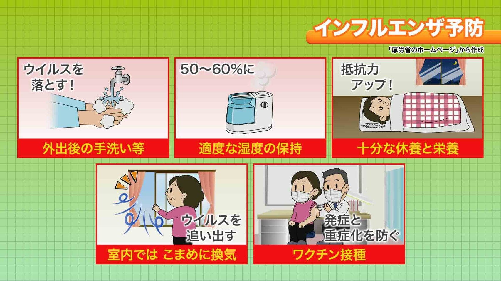 現在、インフルエンザの感染者が増加しています。人が多い場所へ出かける際は、マスクや手洗いを習慣に。満員電車やバスなど、密になりやすい環境ではとくに注意を。