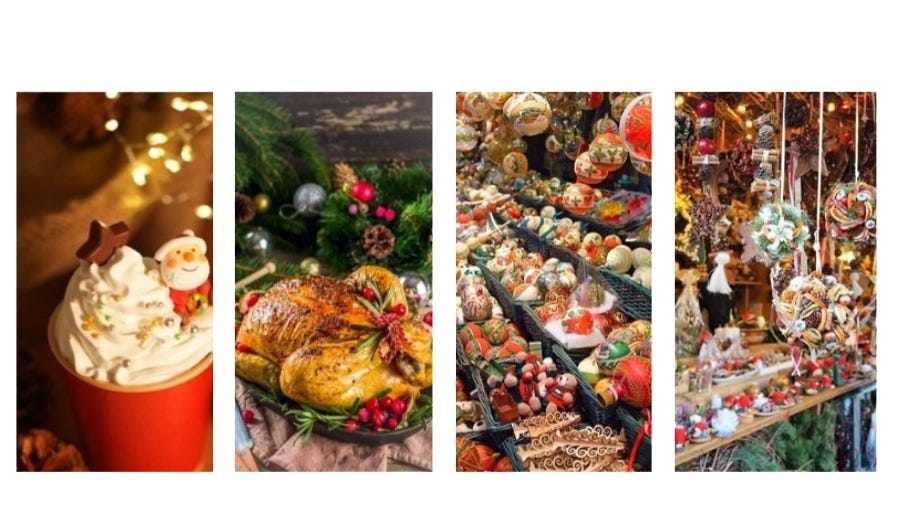 ホットワインやホットチョコレート、クリスマスチキンなど、クリスマスにぴったりのフードのほか、本場ドイツから仕入れたクリスマス雑貨・オリジナルのクリスマスマグカップなどのショップがならびます。