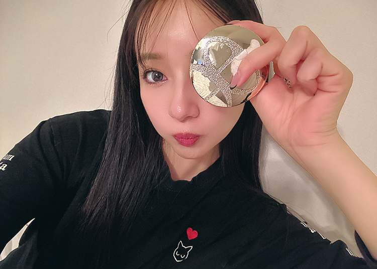 で、サラサラしたプレストパウダーがテカリやヨレをカバーしてくれます」