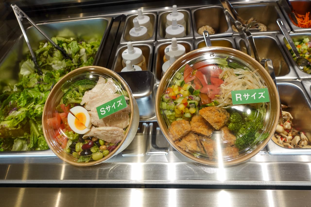 サラダボウルは通常8種類、また季節限定のサラダボウルなどもあり、バリエーション豊富。サイズはSサイズとRサイズから選ぶことができます。さらにサラダボウルを自由にカスタマイズすることも可能です。