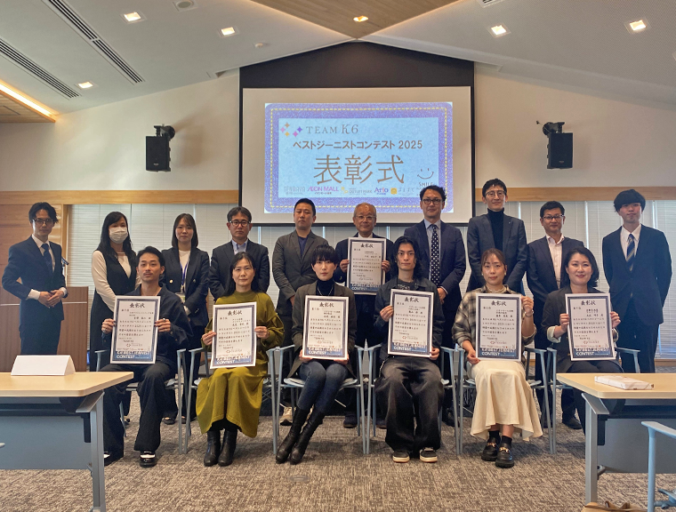 チームK6は「地域を盛り上げたい。倉敷を元気に」という旗の下で、様々な地域貢献を目的に15年に発足。天満屋倉敷店、イオンモール倉敷、三井アウトレットパーク(MOP)倉敷、アリオ倉敷、さんすて倉敷、倉敷商店街振興連盟が互いの垣根を越えて協力している。25年は「新しいことに挑もう」との意識が高まり、9~11月にかけて各施設従業員が対象のK6ベストジーニストコンテストを実施、倉敷のデニム文化を背景に、働く楽しさと地域の魅力を発信した。
