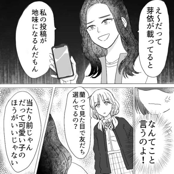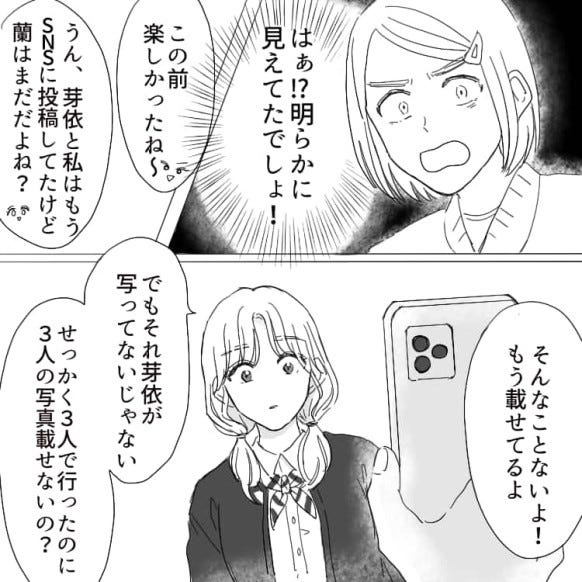 そこで3人で写真を撮りますが、SNSで蘭の投稿した写真に主人公は写っていませんでした。