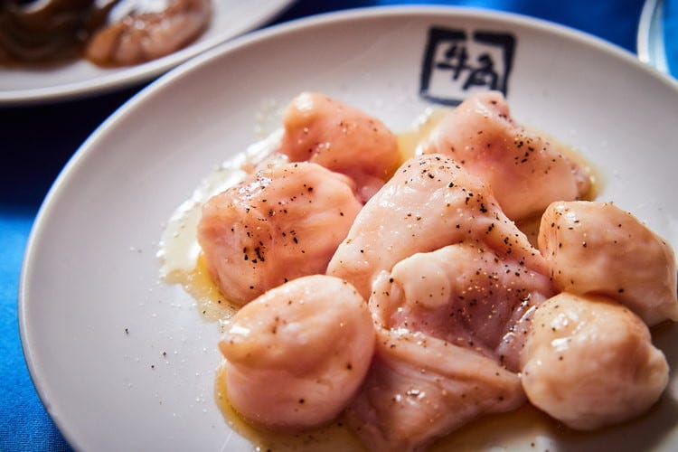 七輪の上で踊るように焼き上がる、イイダコのライブ感。プリッと弾む食感と、牛角自慢のつけダレで旨みが止まりません♡