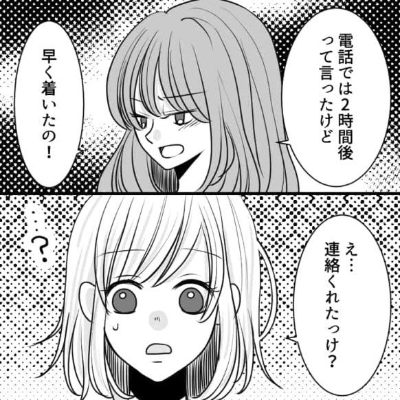 心配になった主人公は彼女に電話をすると、2時間後に着くと言われます。