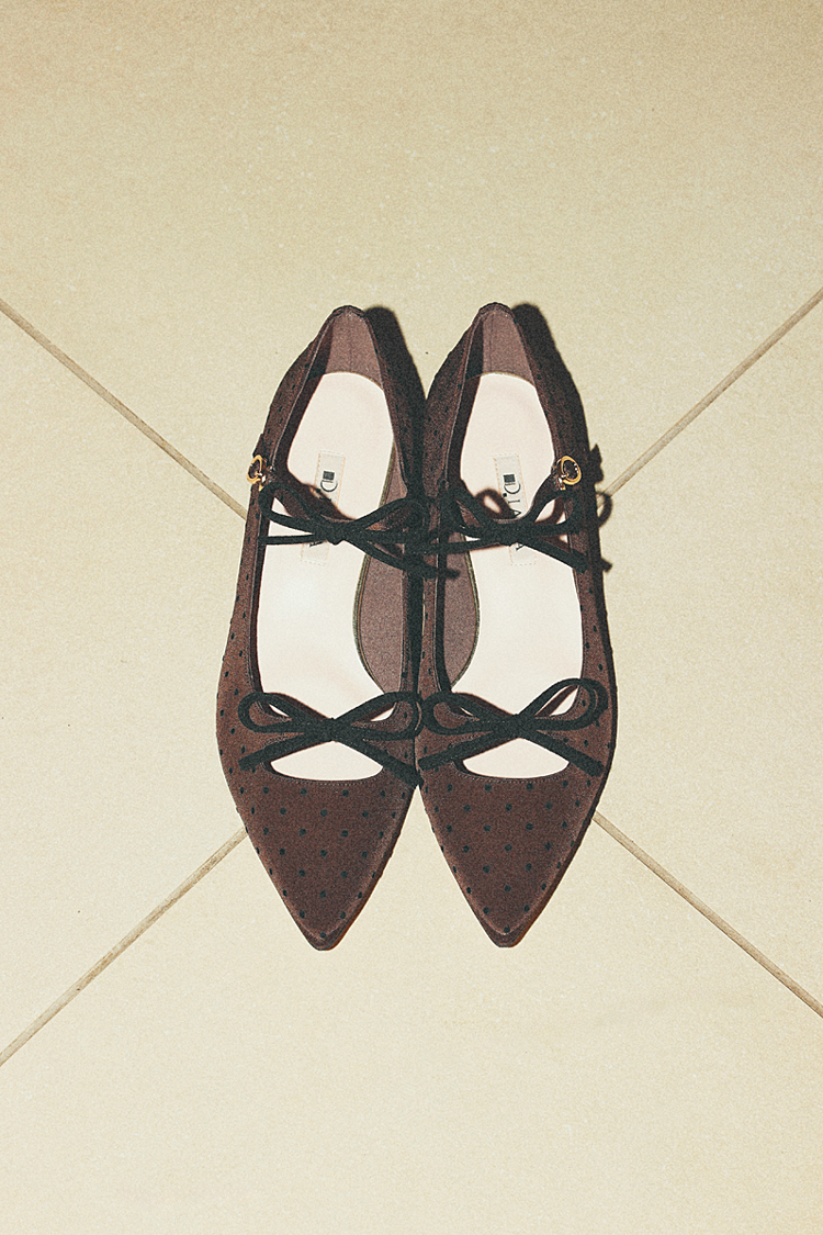 クラシカルムードな深みブラウン。ダブルリボンで大人っぽく甘さを取り入れられる1足。