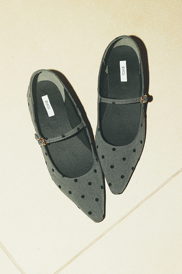 レディライクなドット柄デザイン。メリージェーンで、女性らしい足もとに。