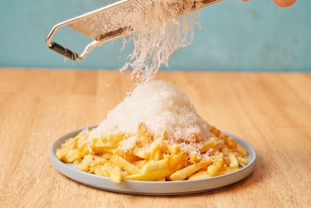 「天使のチーズフライポテト」(990円) チーズは、フランスやイタリアなど世界各国から10種類以上をそろえており、看板メニューは生地を切るとチーズが流れ出る「シカゴピザ」(4種、1,749円~)。