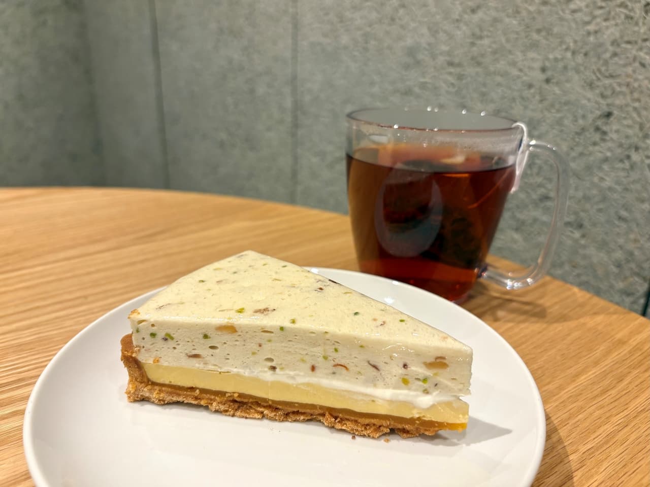 例えば、ホリデーシーズンに食べられるイタリアの伝統菓子「トローネ」をアレンジしたケーキ「トルタ トローネ ミエーレ」は、ハチミツのまったりとした甘さ、ドライフルーツの華やかさ、ナッツの香ばしさ、アプリコットソースの甘酸っぱさが重なりながらも、軽やかな口当たりが特徴。ケーキにはそれぞれ“相性の良いティー”を提案しており、さまざまなおいしさを見せる「トルタ トローネ ミエーレ」には、味わいをまとめてくれる「ルワンダ ブラック ティー」とのペアリングがイチオシです。