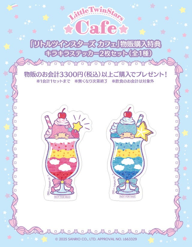 「リトルツインスターズ」が誕生して50年にもなるんですね! 幼いころから仲良しの2人が大好きでしたが、「2025年サンリオキャラクター大賞」でも総合7位に輝いています。かなり人気が予想される&グッズがもらえるので、事前予約がおすすめです!