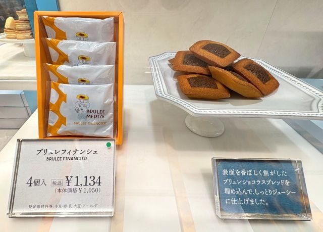 「ブリュレフィナンシェ」4個入1,134円 東京駅で行列を生む人気商品も、阪神梅田本店で常設販売に。累計200万個を売り上げた「ブリュレクリームタルト」や、コク深い「ブリュレフィナンシェ」が店頭に並びます。