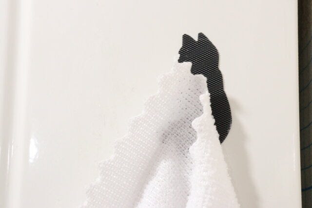 可愛い見た目で、実力派の猫型ホルダーです。省スペースでしっかりスポンジやタオルをキャッチして、必要な時にサッと使えるので、毎日活躍してくれること間違いなし♪