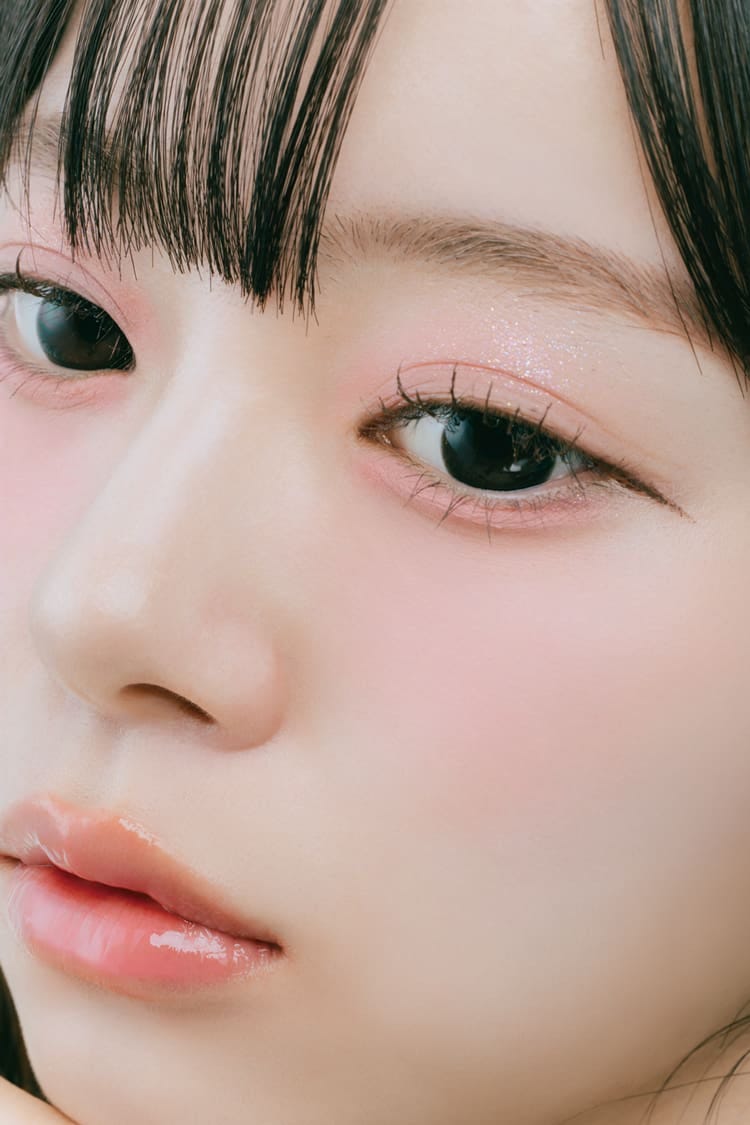 目元と頬まわりのピンクカラーがほどよい血色感を演出。ぷるんとした唇に思わず見惚れてしまいそう♡