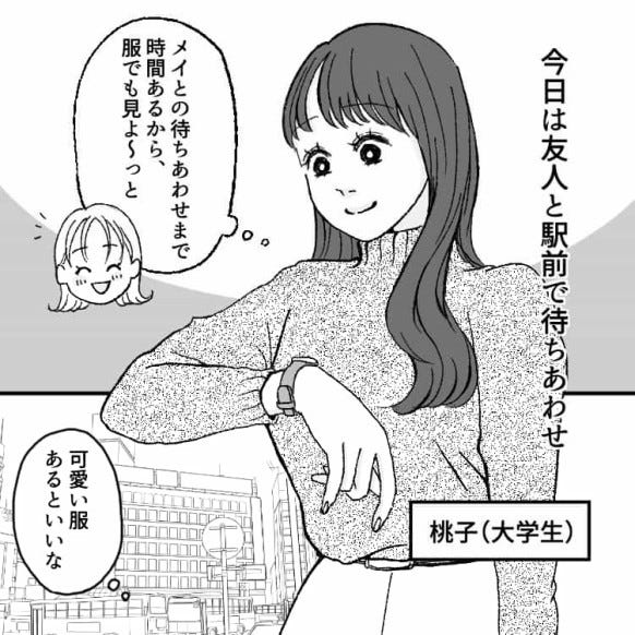 待ちあわせ時間より、早めに着いた彼女は洋服を見て待つのですが……?